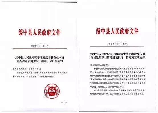 把一份文件復(fù)制粘貼過(guò)來(lái),首先記得改文號(hào)。文號(hào)是一份紅頭文件的臉面,兩份文件湊合一個(gè)文號(hào),你想過(guò)文件的感受么?遼寧省綏中縣一個(gè)綏政發(fā)[2017]49文號(hào),匹配有兩個(gè)完全不同的文件。其中一份就屬于臨時(shí)編造、應(yīng)對(duì)環(huán)保檢查的假文件。而這個(gè)假文件背后,庇護(hù)著一個(gè)嚴(yán)重違規(guī)的圍填海項(xiàng)目建設(shè)。
