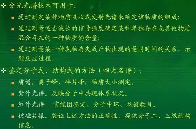 光譜: 定性分析,確定樣品中主要基團(tuán),確定物質(zhì)類別。從紅外到X射線,都是光譜,其應(yīng)用范圍差別很大,是對(duì)分子或原子的光譜性質(zhì)進(jìn)行分析解析的。