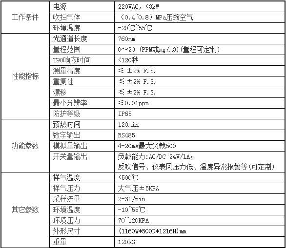 激光氣體分析儀參數(shù)